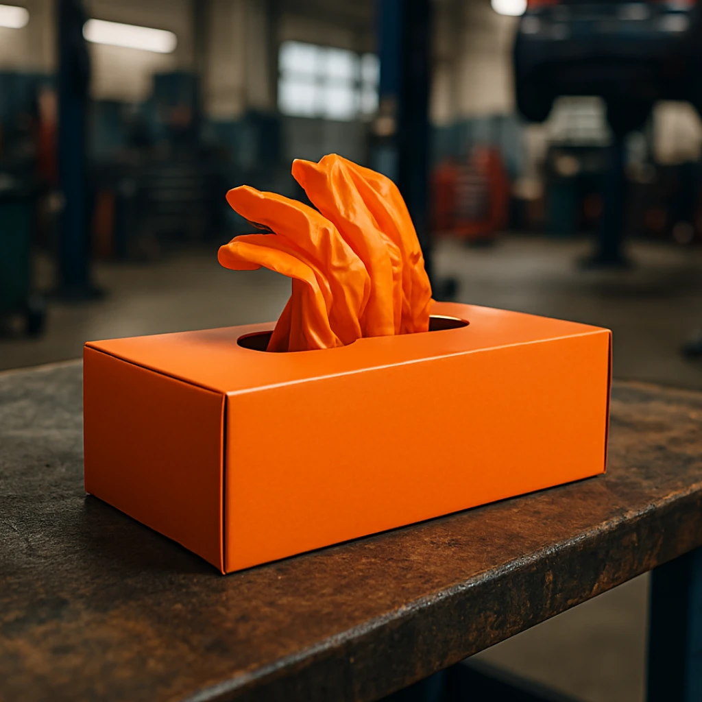BOX Guantes de Nitrilo 8grs – M, Naranjo